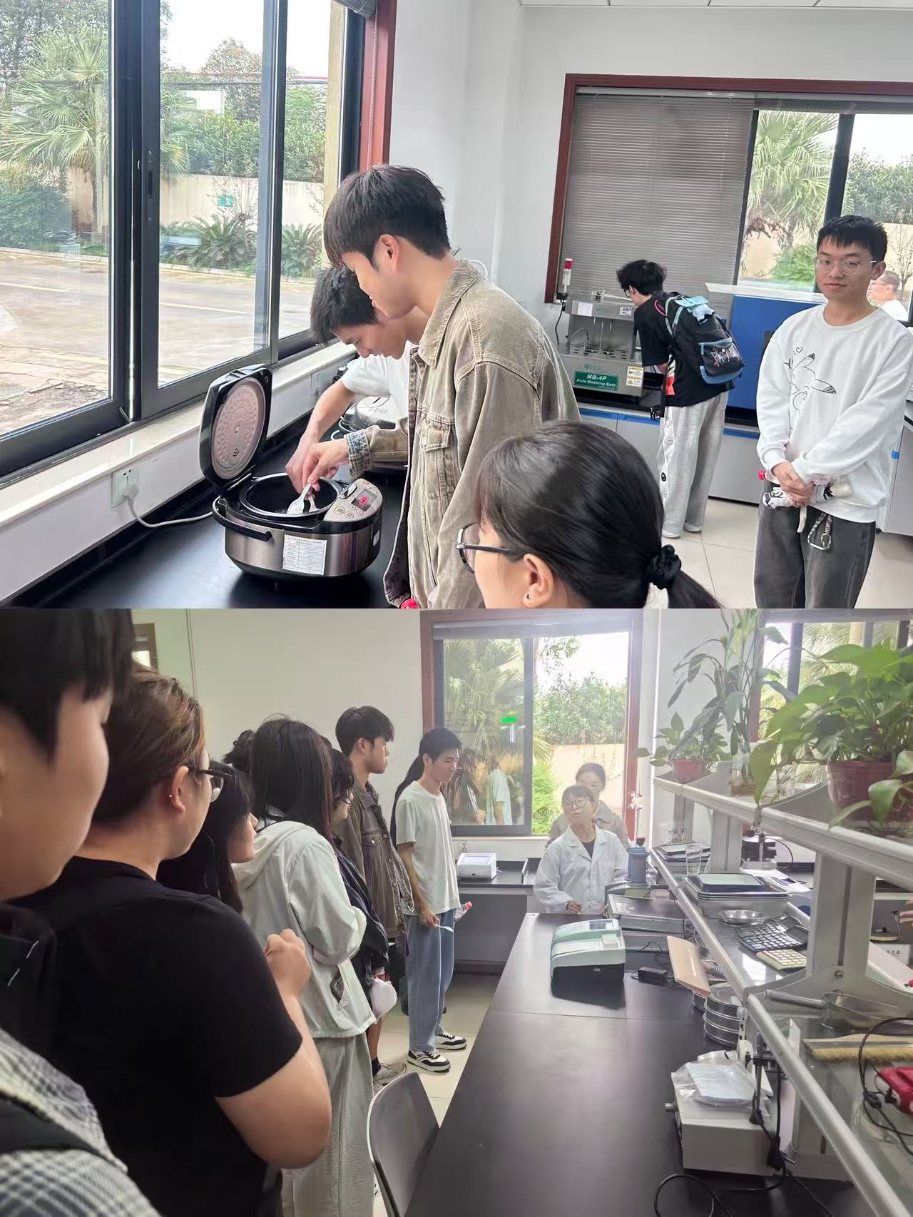 随后,同学们走进专业检测实验室,近距离观摩大米水分含量、杂质筛选、黄曲霉毒素检测等关键指标的检测过程。实地探访让同学们不仅看到企业在粮食质量管控上的严谨态度,更对食堂大米 “从源头到餐桌” 的安全溯源链路有了清晰认知。