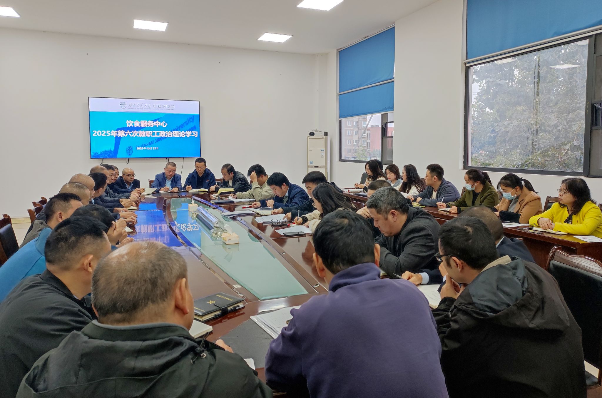 根据学校、后勤保障部相关工作要求,10月23日下午,饮食服务中心组织开展2025年第六次教职工政治理论学习,本次学习由党支部书记李叁源同志主持,支部党员、入党积极分子及部分职工参加学习。